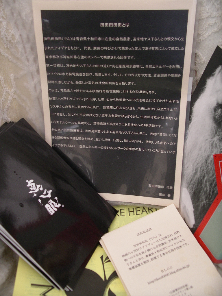 映画「六ヶ所村ラプソディー」に出演された苫米地ヤス子さんと共に、マイクロ水力発電装置を製作、設置します。